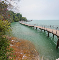 Sentosa (Sanskrit: संतोष; Chinese: 圣淘沙) is a popular island resort i